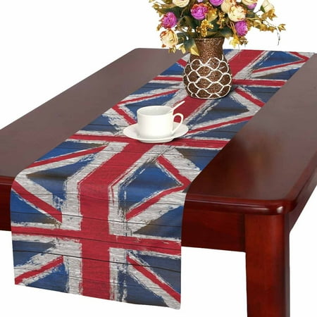 Mkhert Wooden Grunged United Kingdom Flag British Union Jack Flag Table Runner Home Decor For Home Kitchen Wedding Party Banquet Decoration 16x72 Inch