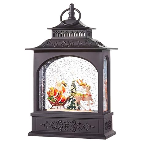 Raz Imports Seasonal Lighted Santa Claus And Sleigh Christmas Water Snow Glitter Globe Lantern Decor 11 Inch Battery Operated With Timer
