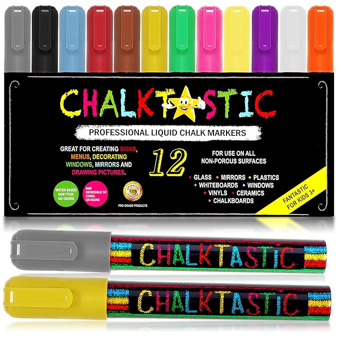 Chalk Markers By Fantastic Chalktastic Chalk Pens Best For Kids Art Chalkboard Labels Menu Board Bistro Boards Window Markers Erasable Chisel Or