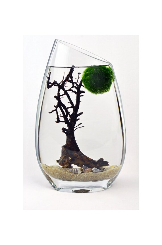 Marimo Terrarium Japanese Moss Ball Aquarium Slanted Rim Vase Sea Fan Shells Green Gift Home Decor