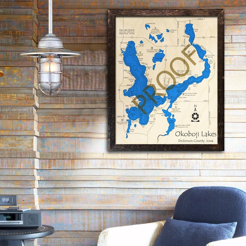 Lake Okoboji Iowa 3d Wood Map Cabin Decor Lake House Nautical Decor Housewarming Wedding Fishing Sailing Gift