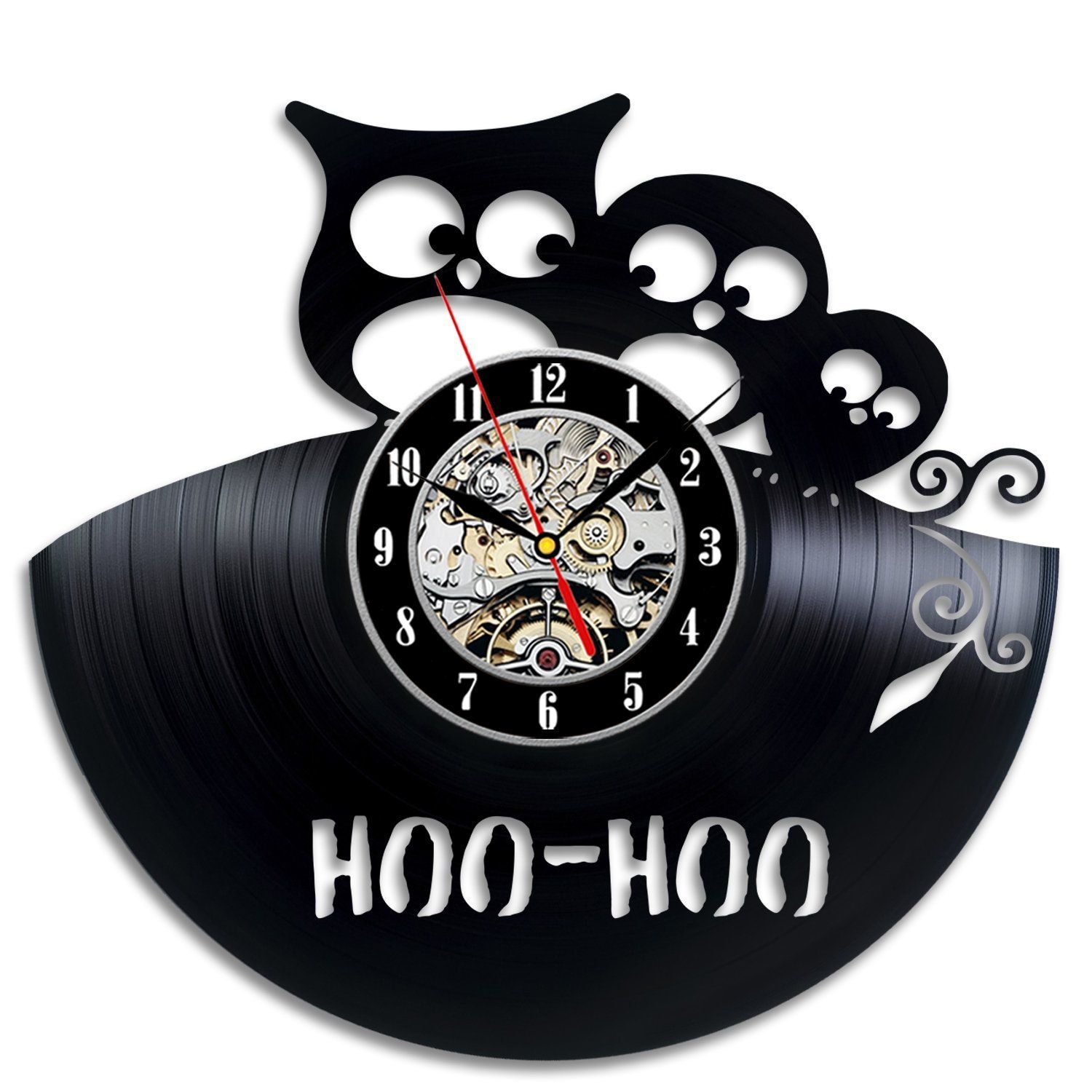 Owl Art Vinyl Wall Clock Gift Room Modern Home Record Vintage Decoration