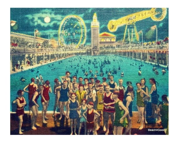 Mid Century Swimming Pool Art Prints Coney Island Swimming Pool Print Art Deco Art Beach Home Decorating Ideas Swimmer Gifts